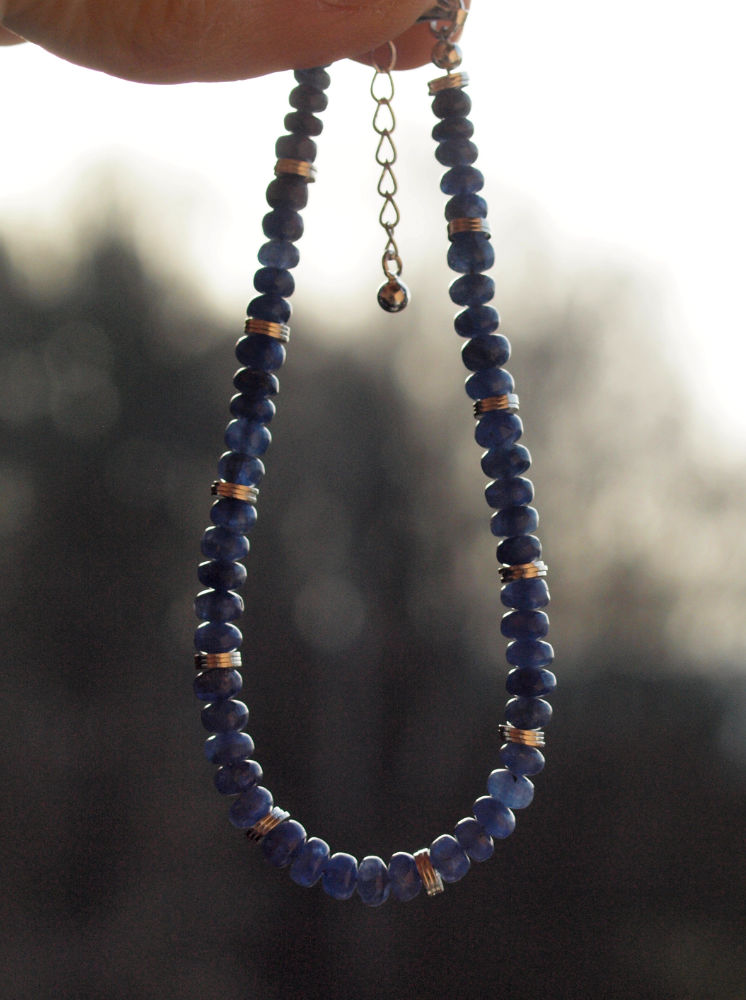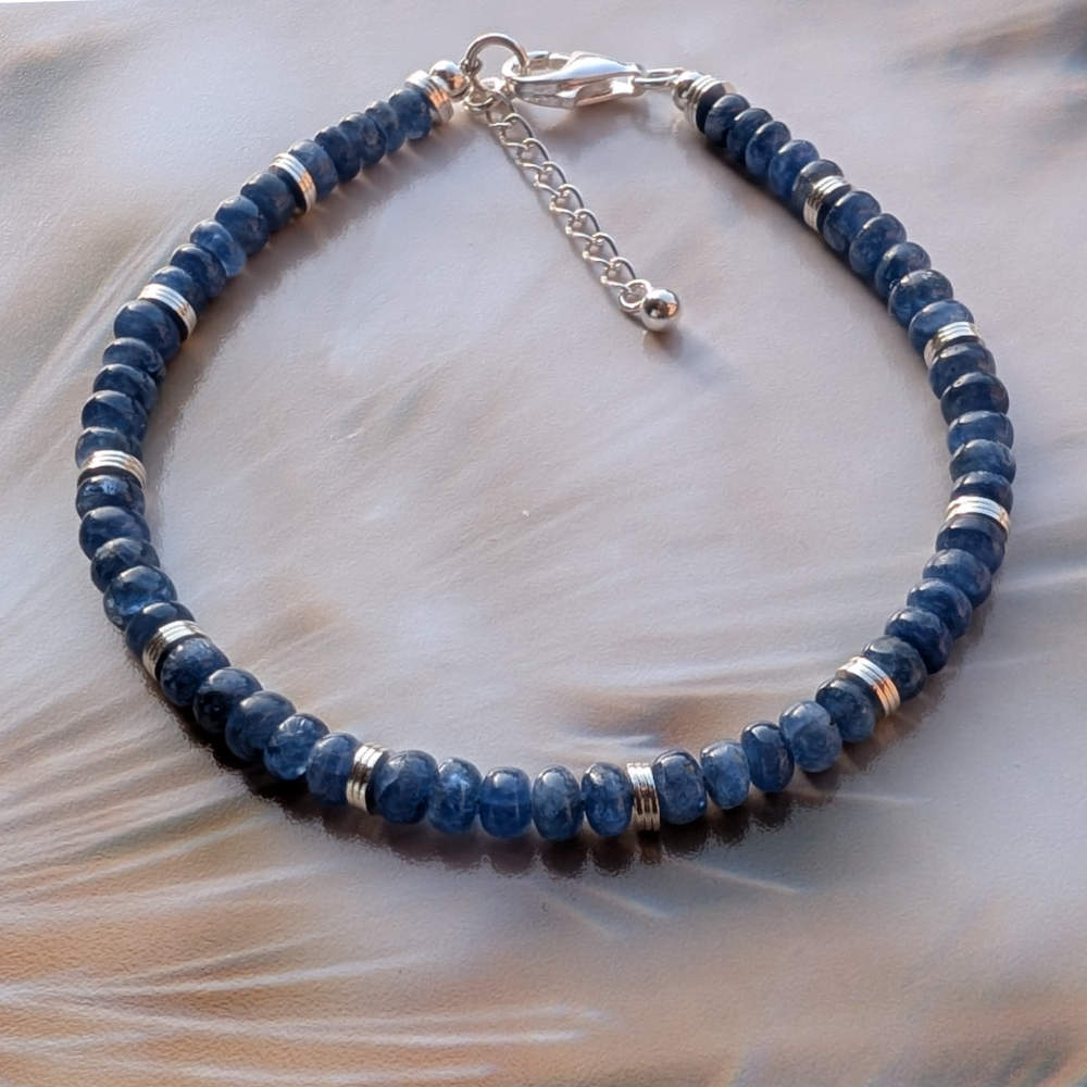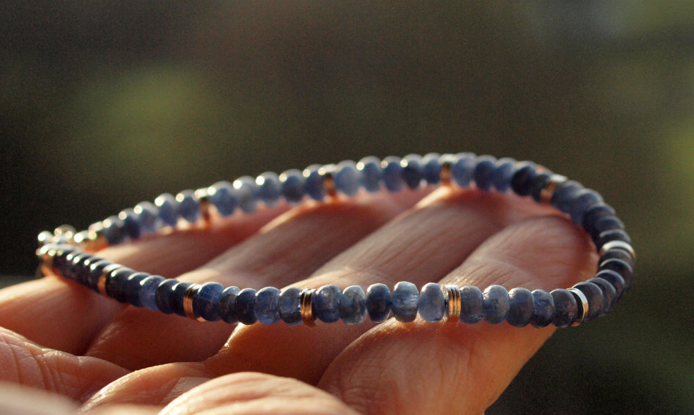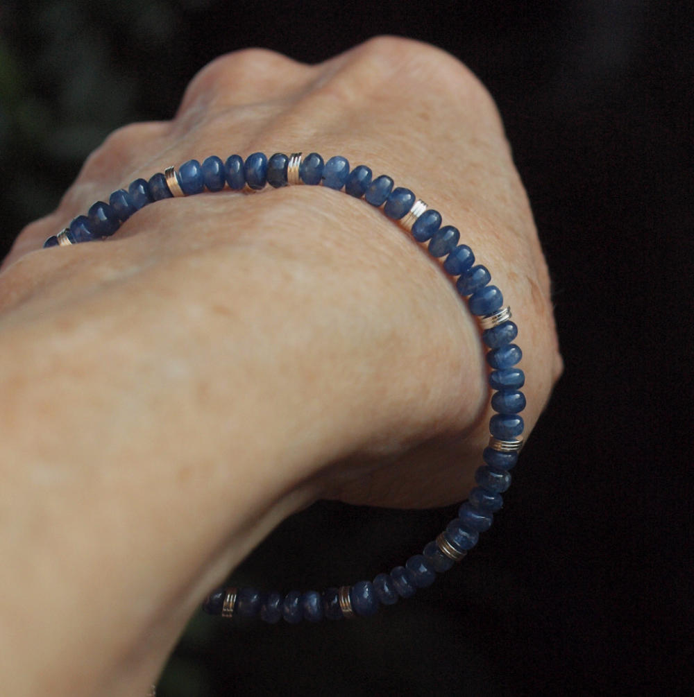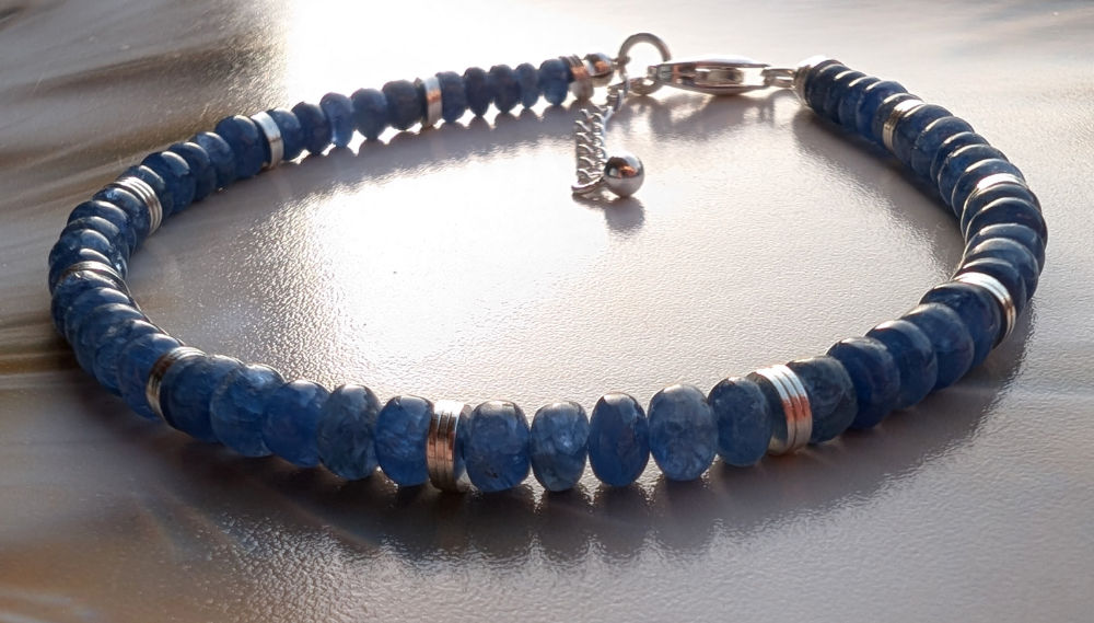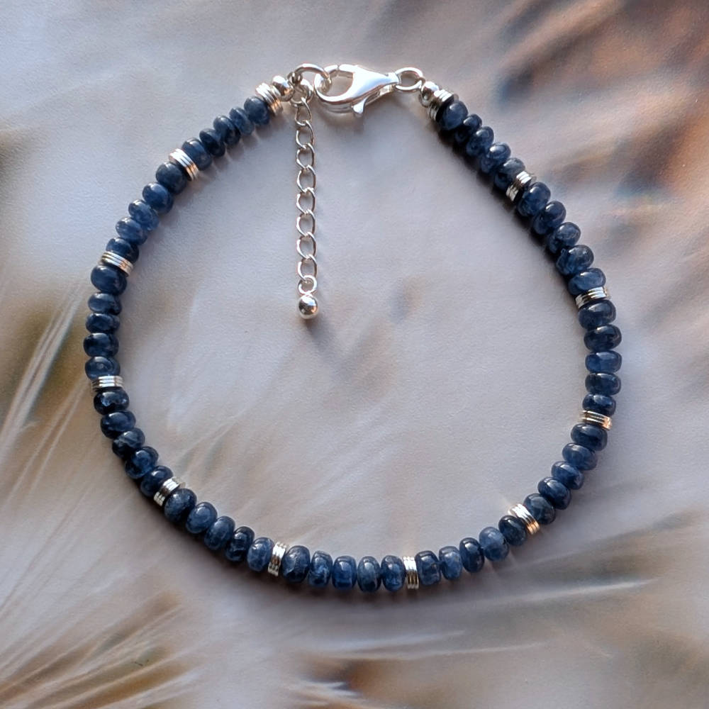 Das Armband aus blauen Saphir Rondellen vermittelt dir die Durchlässigkeit geistiger Grenzen und tiefes Vertrauen.