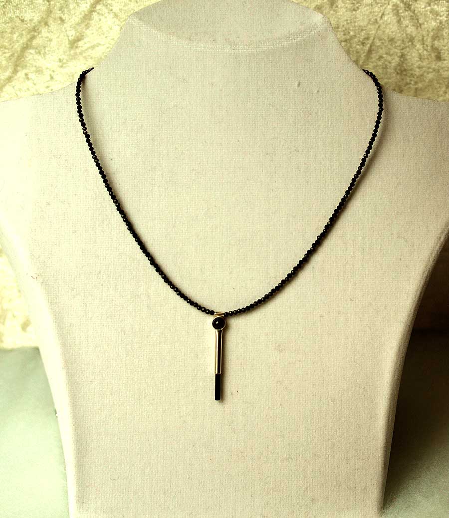 Kettenlänge 42 cm, Mittelteil 3,8 x 0,5 cm, Sterndiopsid Cabochon 5 mm, Schörl (schwarzer Turmalin) Kristallstab 1,5 x 0,2 x 0,2 cm, facettierte Schörl Kugeln 2 mm