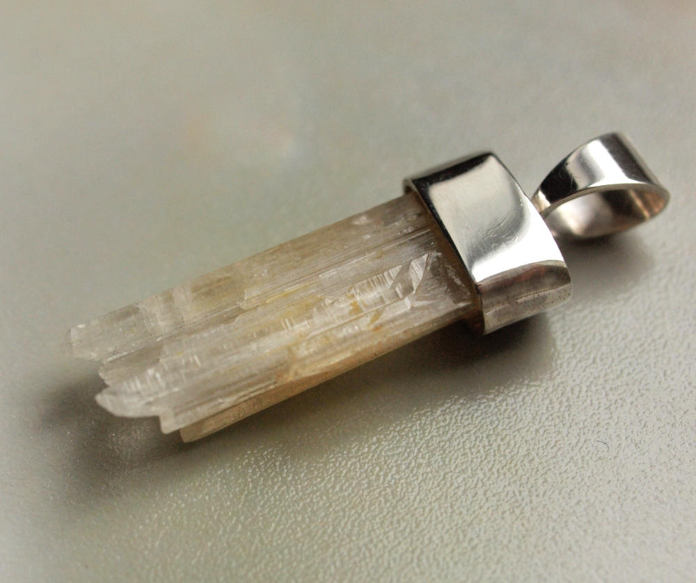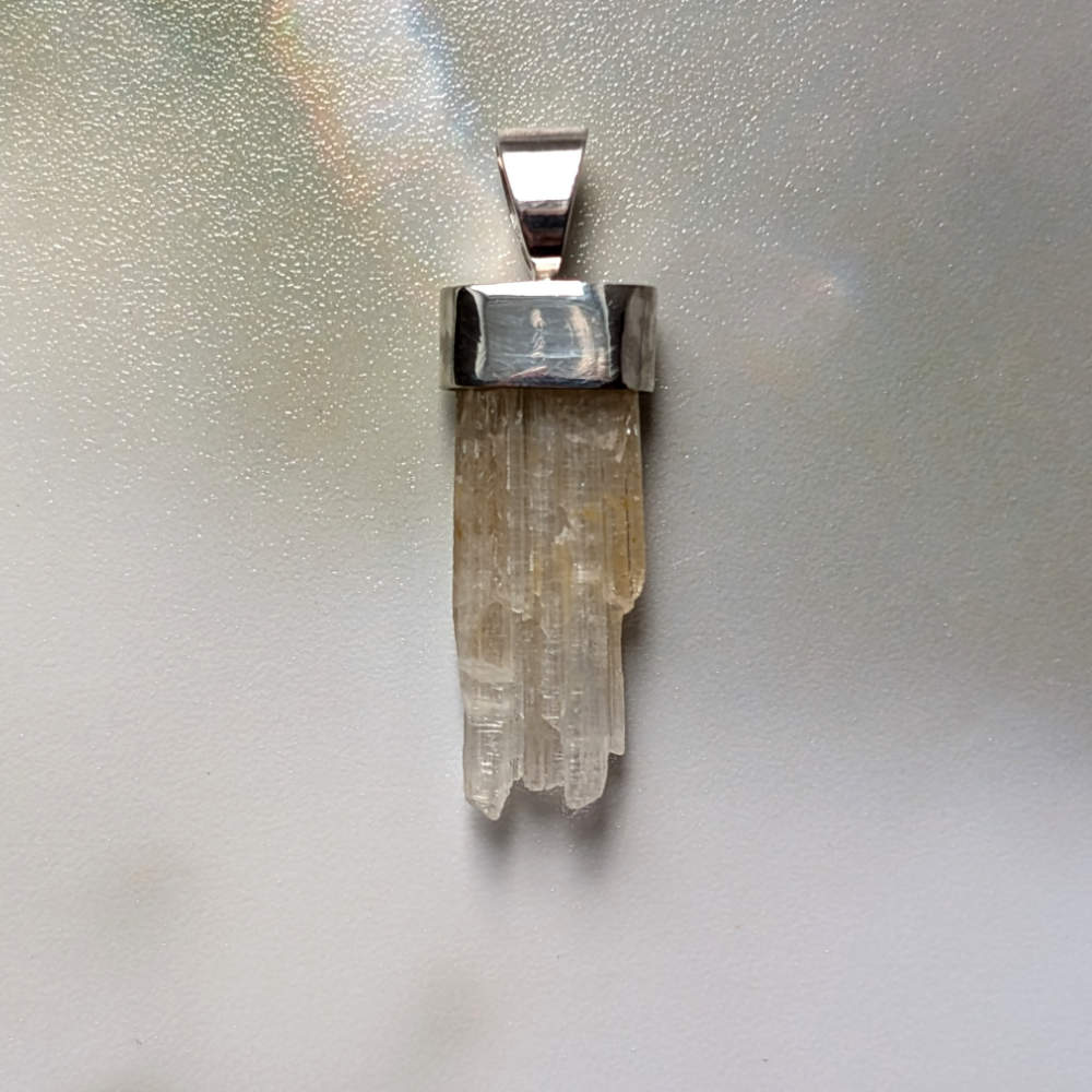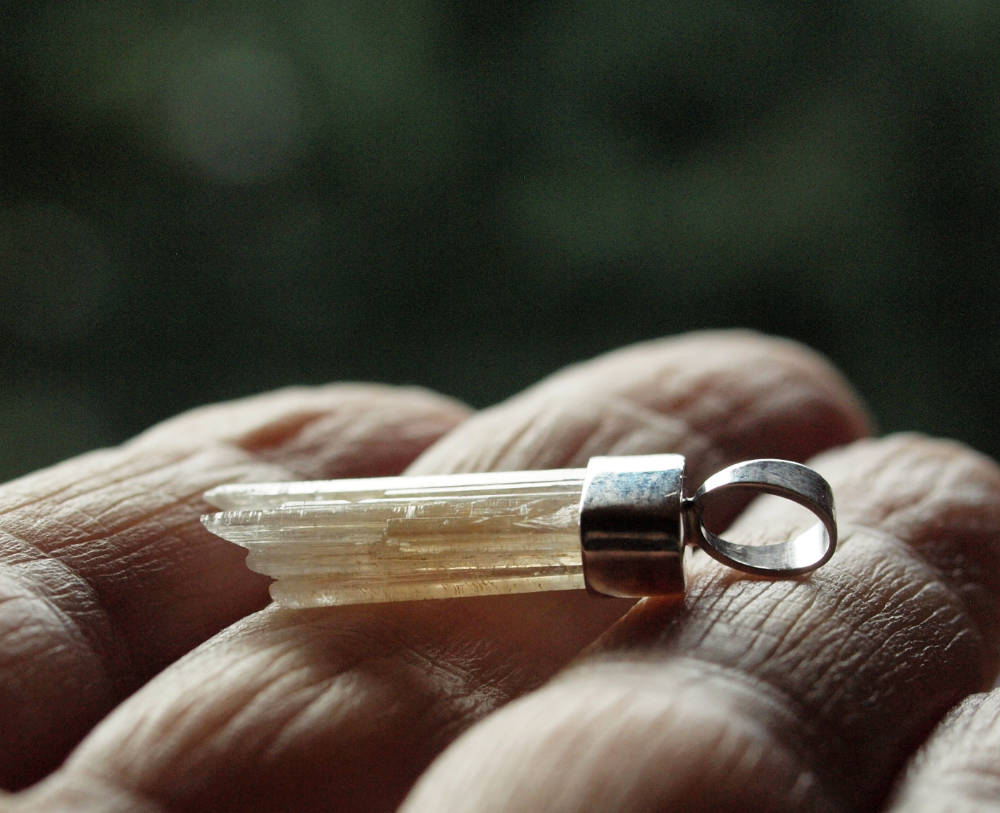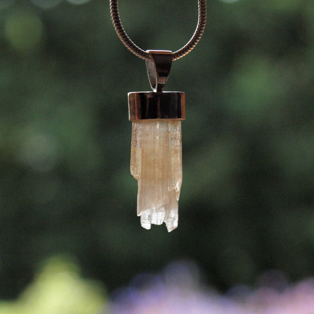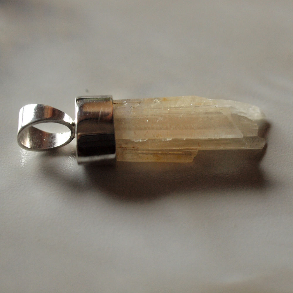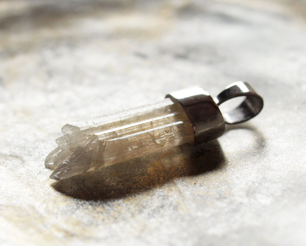 Den natürlich gewachsenen Strontianit Kristall habe ich mit Silber gefasst.